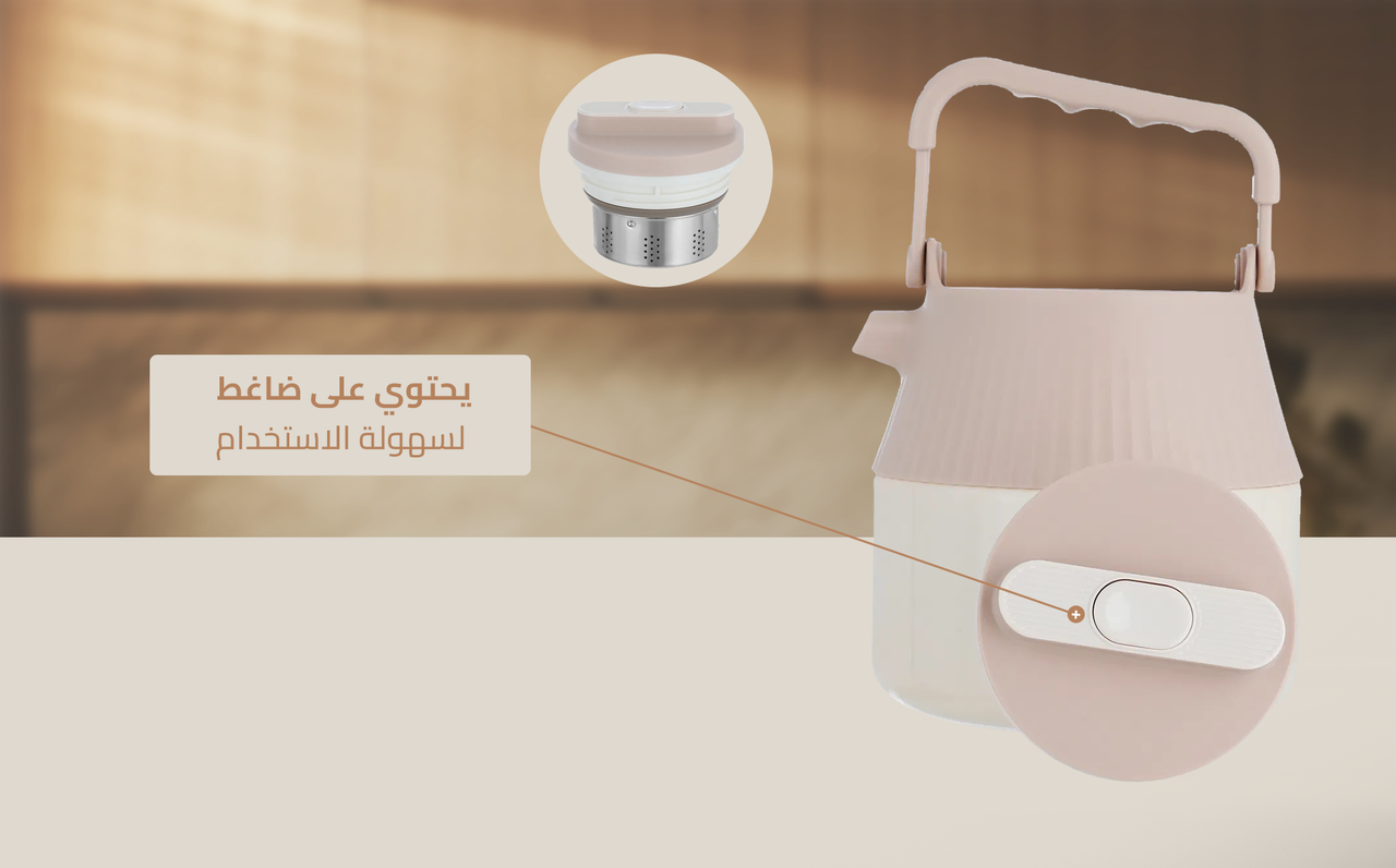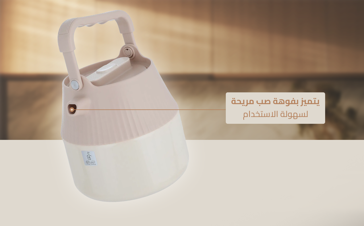 - مع ترمس ريما السيف غاليري، نضمن لك تجربة صب لا مثيل لها بفضل الضاغط العملي المصمم بعناية فائقة. انسَ عناء رفع الترمس وإمالته!