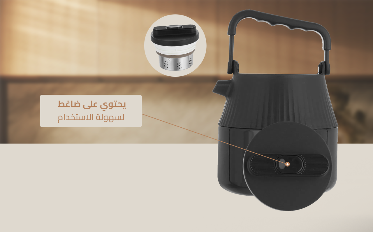 - مع ترمس ريما السيف غاليري، نضمن لك تجربة صب لا مثيل لها بفضل الضاغط العملي المصمم بعناية فائقة. انسَ عناء رفع الترمس وإمالته!