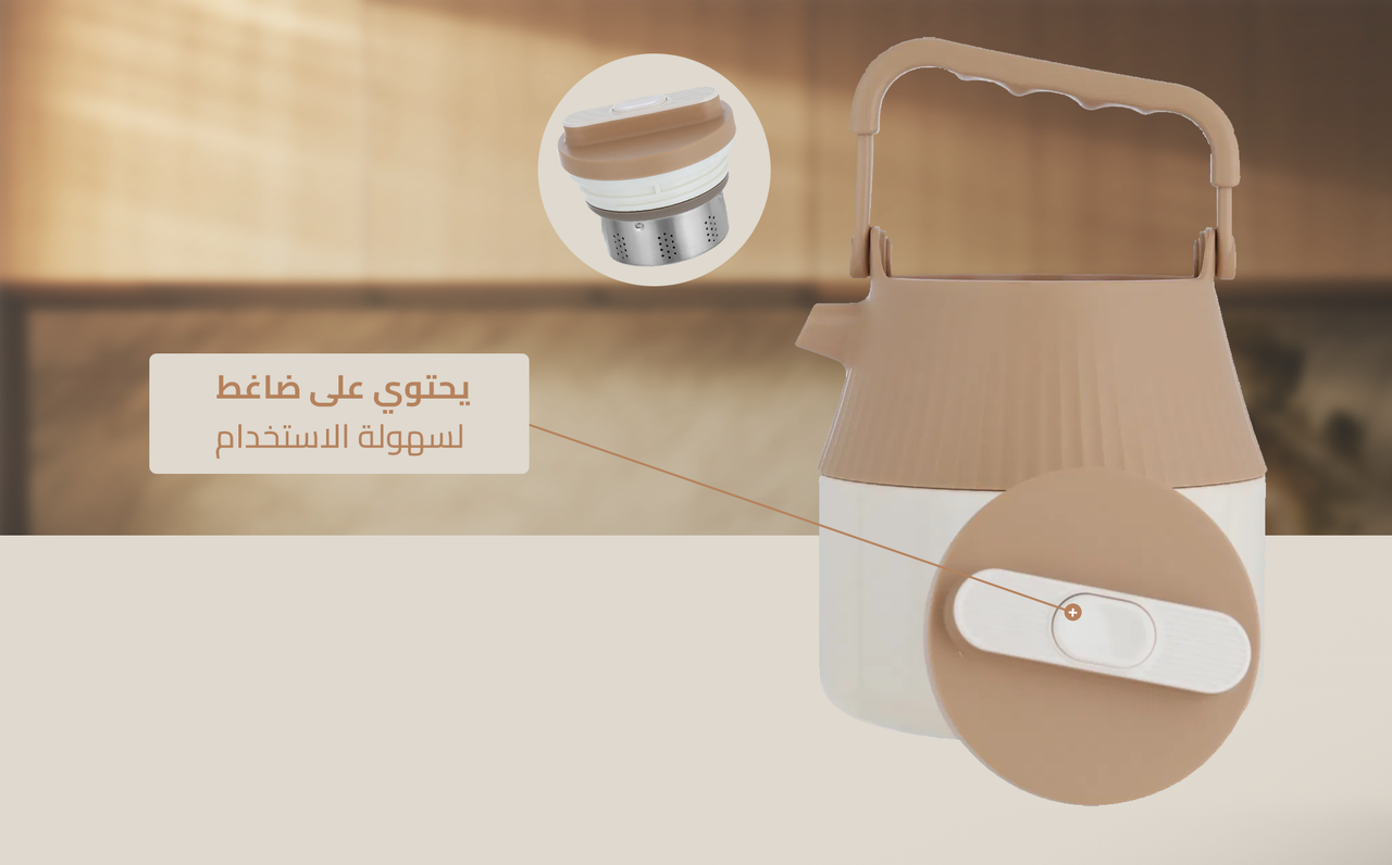 - مع ترمس ريما السيف غاليري، نضمن لك تجربة صب لا مثيل لها بفضل الضاغط العملي المصمم بعناية فائقة. انسَ عناء رفع الترمس وإمالته!