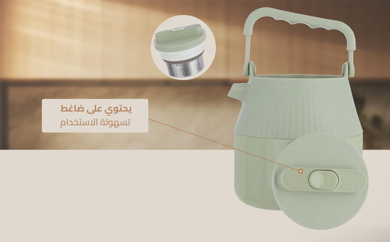 - مع ترمس ريما السيف غاليري، نضمن لك تجربة صب لا مثيل لها بفضل الضاغط العملي المصمم بعناية فائقة. انسَ عناء رفع الترمس وإمالته!